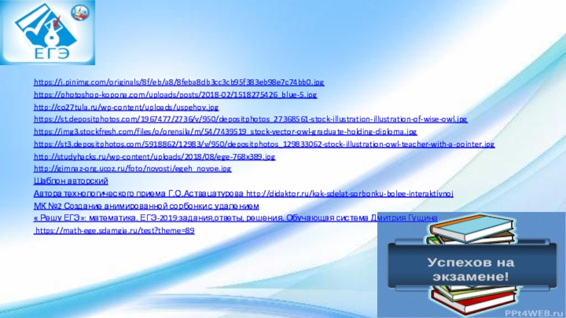 Это сайт презентаций, где можно хранить и обмениваться своими презентациями, докладами, проектами, шаблонами в формате PowerPoint с другими пользователями. Мы помогаем школьникам, студентам, учителям, преподавателям хранить и обмениваться учебными материалами.