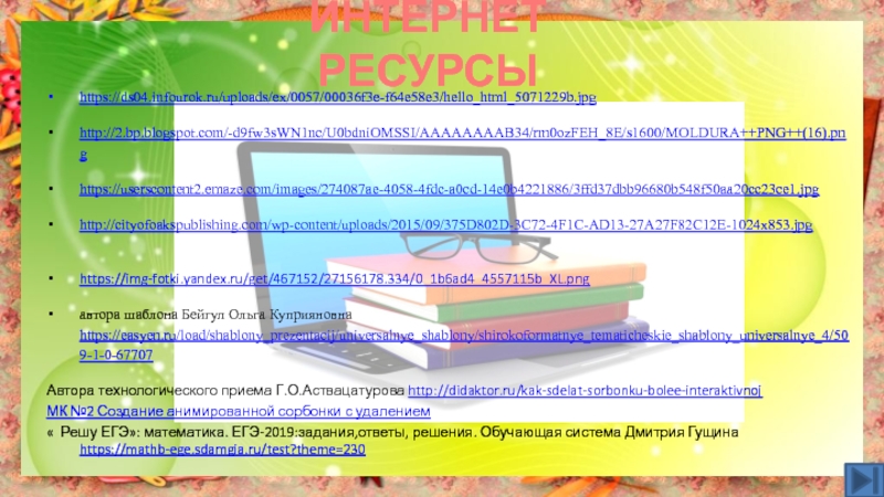Это сайт презентаций, где можно хранить и обмениваться своими презентациями, докладами, проектами, шаблонами в формате PowerPoint с другими пользователями. Мы помогаем школьникам, студентам, учителям, преподавателям хранить и обмениваться учебными материалами.