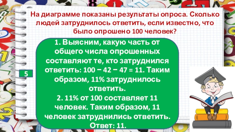 На диаграмме показаны результаты опроса. Сколько людей затруднилось ответить, если известно, что было опрошено 100 человек?