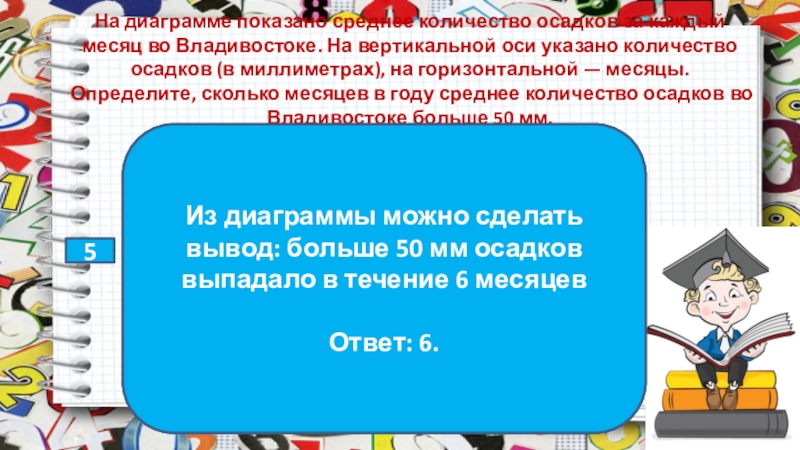 Из диаграммы можно сделать вывод: больше 50 мм осадков выпадало в течение 6 месяцев
