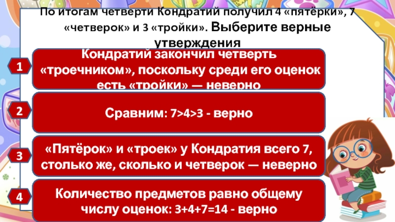 Кондратий закончил четверть «троечником», поскольку среди его оценок есть «тройки» — неверно
