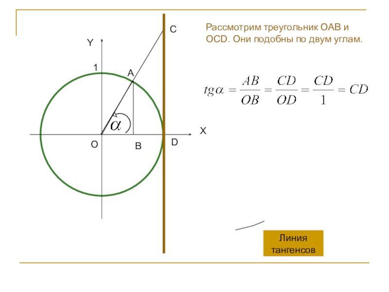 BЛиния тангенсовYXAOCD1Рассмотрим треугольник OAB и OCD. Они подобны по двум углам.