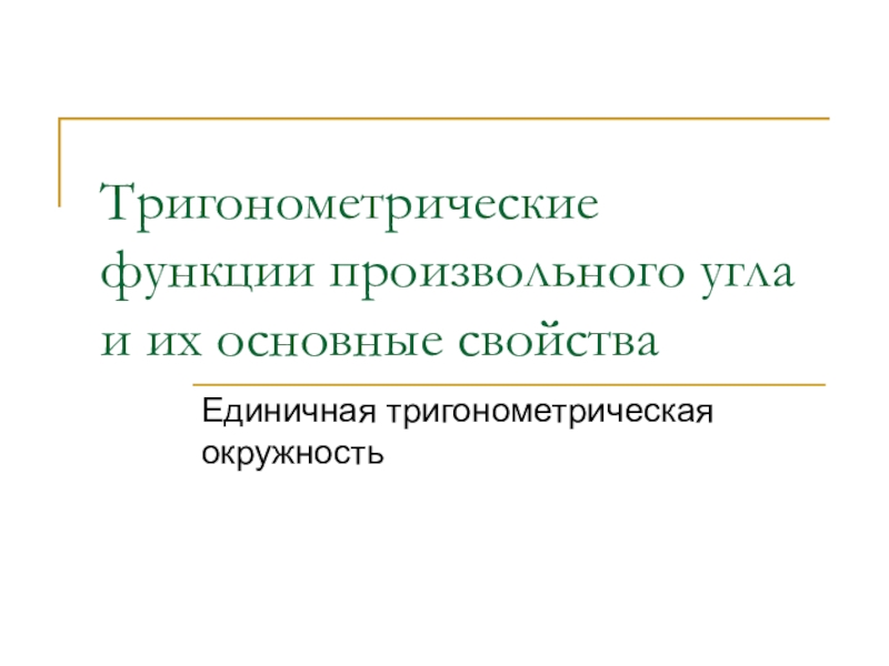 Презентация, доклад на тему Тригонометрические функции произвольного угла и их основные свойства. Единичная тригонометрическая окружность