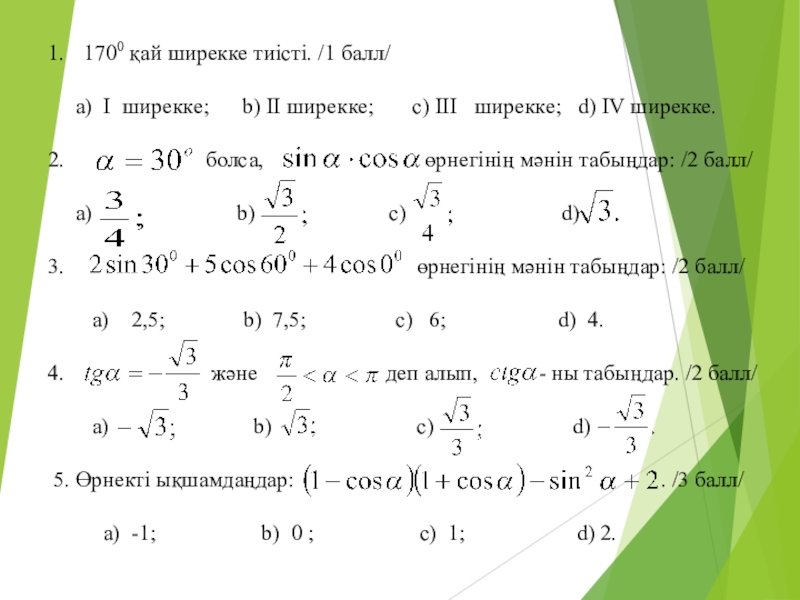 1.  b 2.  c 3.  b 4.  a 5.  d Дұрыс жауаптары