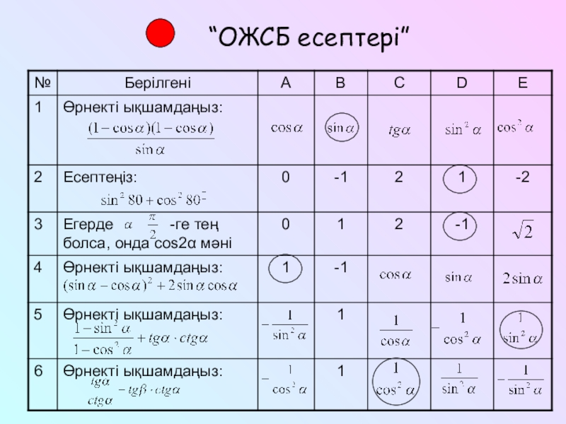 Тригонометриялық функциялардың мәндерін