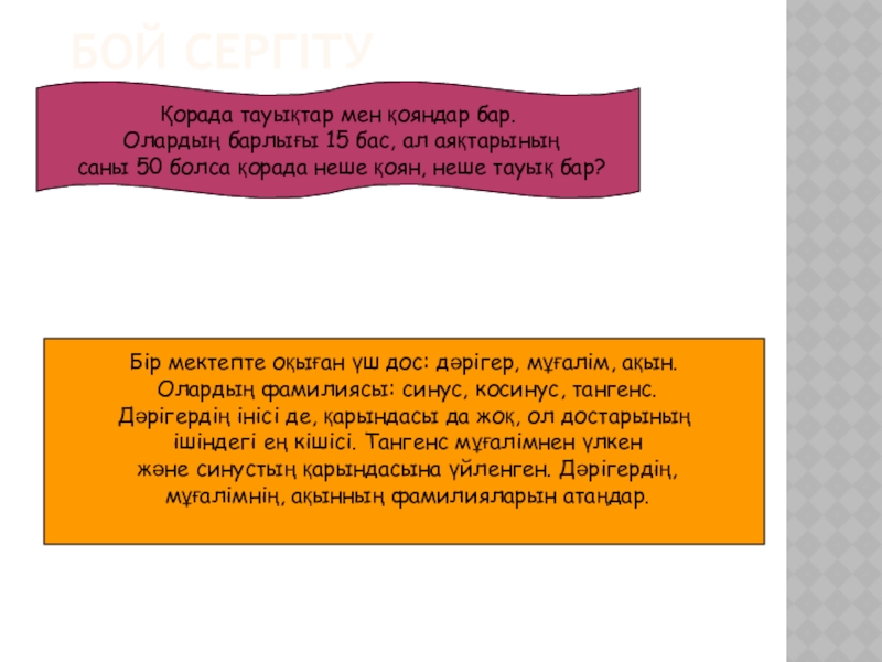 Олардың фамилиясы: синус, косинус, тангенс.