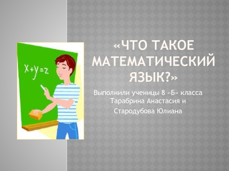 «что такое математический язык?»Выполнили ученицы 8 «Б» класса Тарабрина Анастасия и Стародубова Юлиана