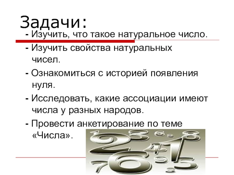 - Исследовать, какие ассоциации имеют числа у разных народов.
