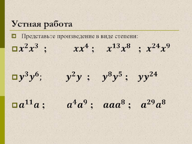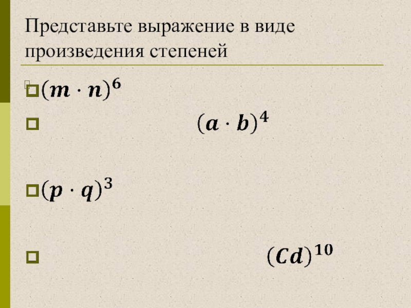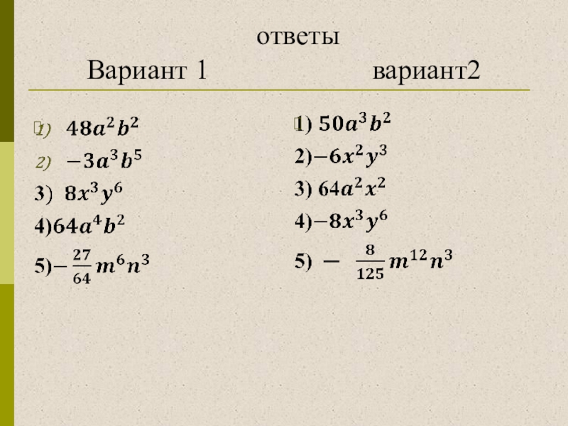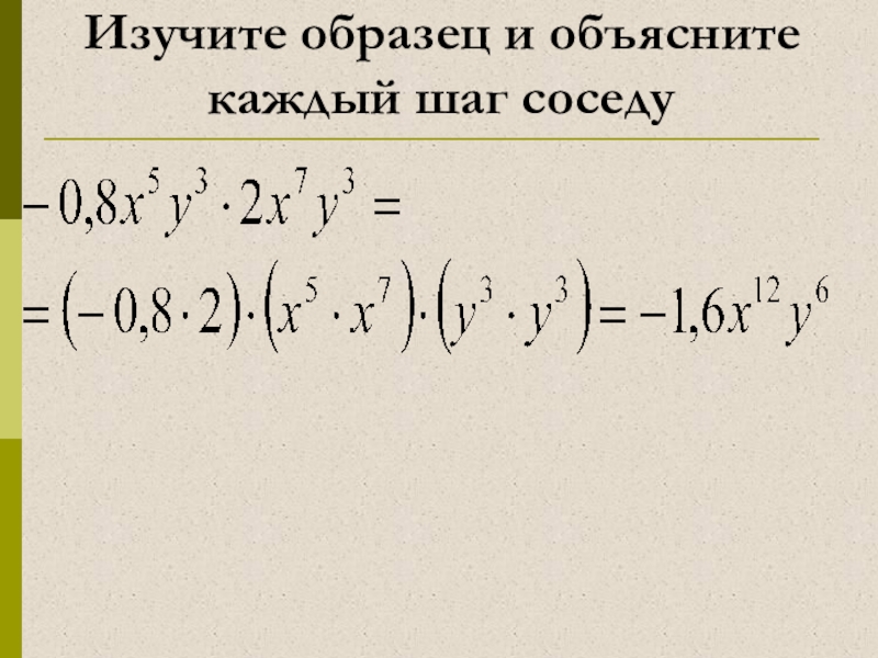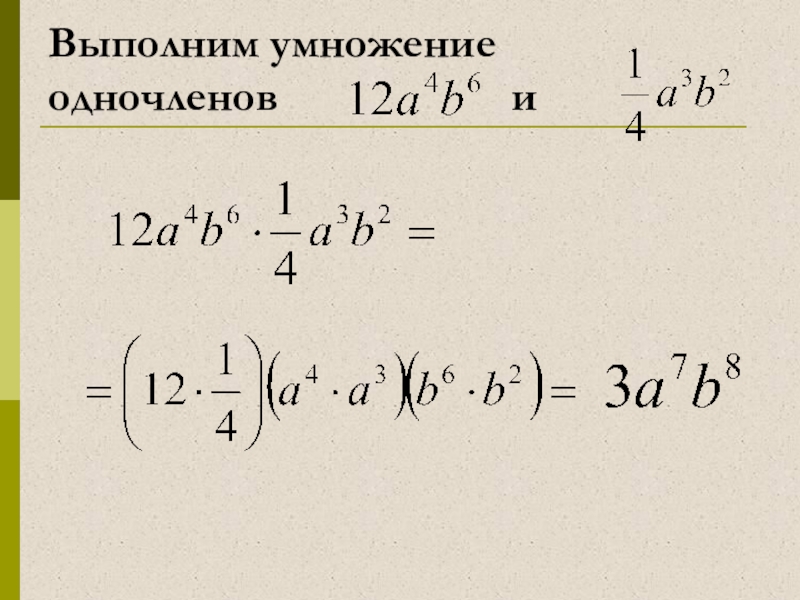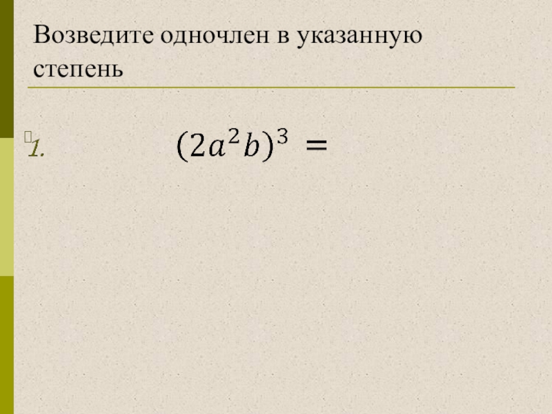 Презентация, доклад на тему Умножение одночленов. Возведение одночлена в натуральную степень.