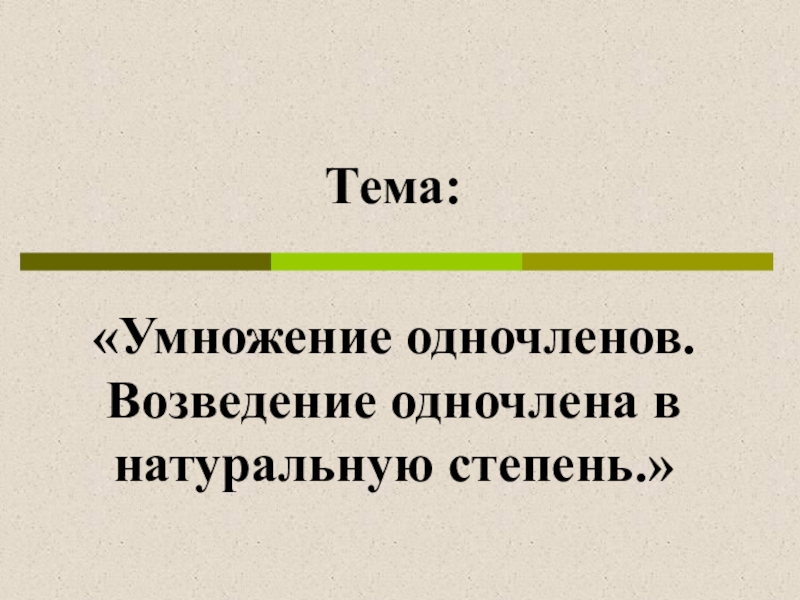 «Умножение одночленов. Возведение одночлена в натуральную степень.»