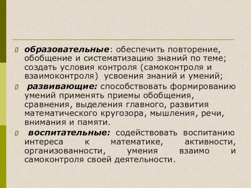 Слайд 23образовательные: обеспечить повторение, обобщение и систематизацию знаний по теме; создать условия