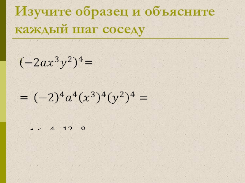 Слайд 13Изучите образец и объясните каждый шаг соседу