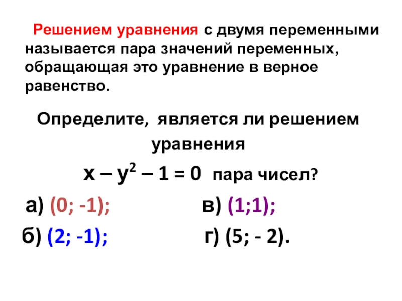 Решением уравнения с двумя переменными называется пара значений переменных,