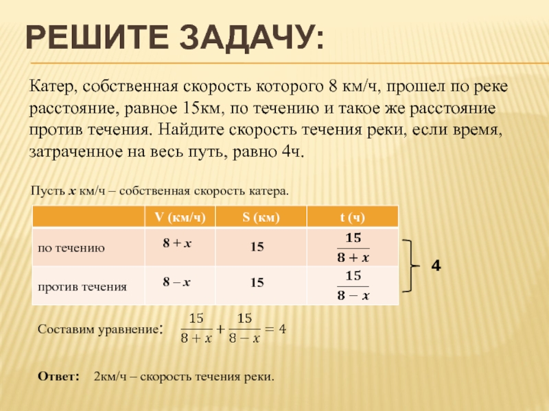 2км/ч – скорость течения реки.