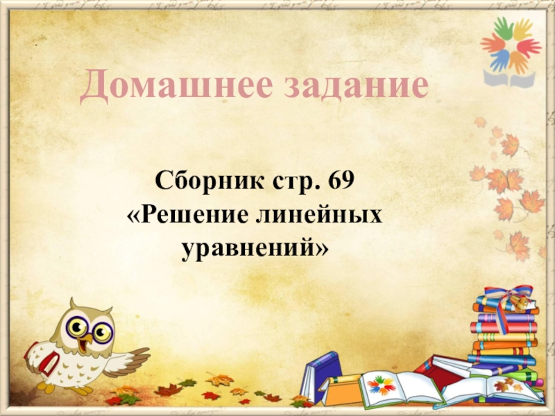 Сборник стр. 69 «Решение линейных уравнений»Домашнее задание