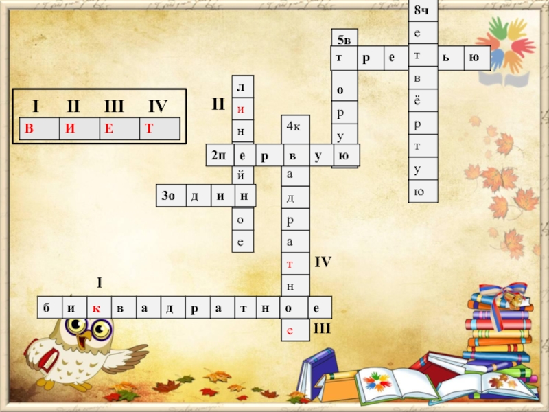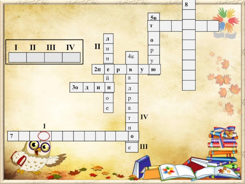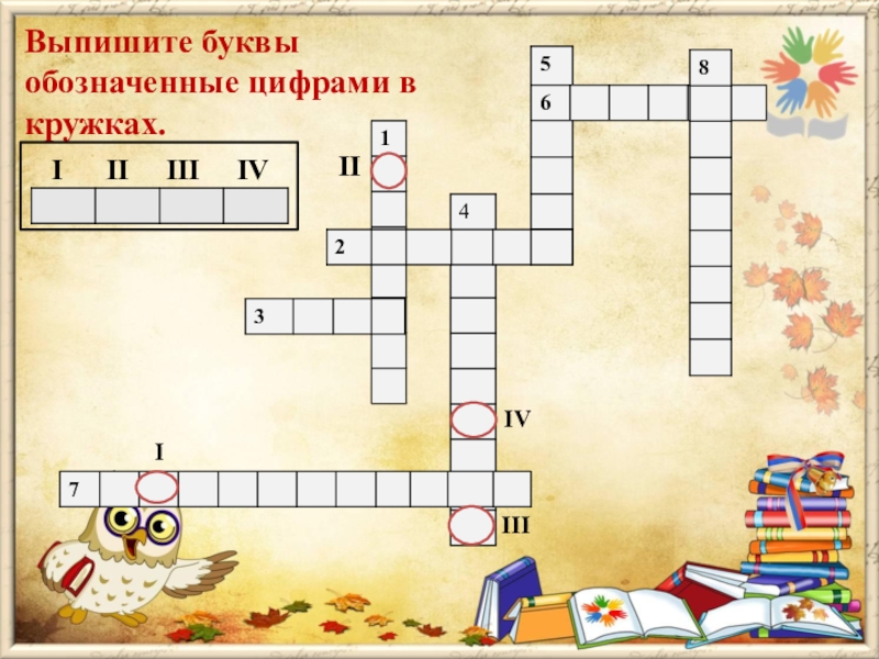 IIIIVIIIВыпишите буквы обозначенные цифрами в кружках.  I   II   III   IV