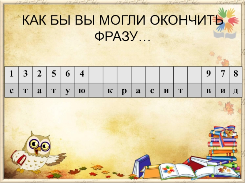 Слайд 19КАК БЫ ВЫ МОГЛИ ОКОНЧИТЬ ФРАЗУ…