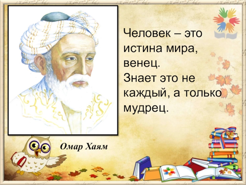 Омар ХаямЧеловек – это истина мира, венец. Знает это не каждый, а только мудрец.