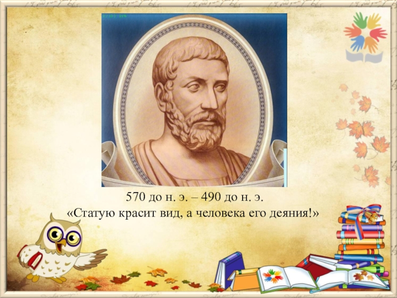 570 до н. э. – 490 до н. э.«Статую красит вид, а человека его деяния!»