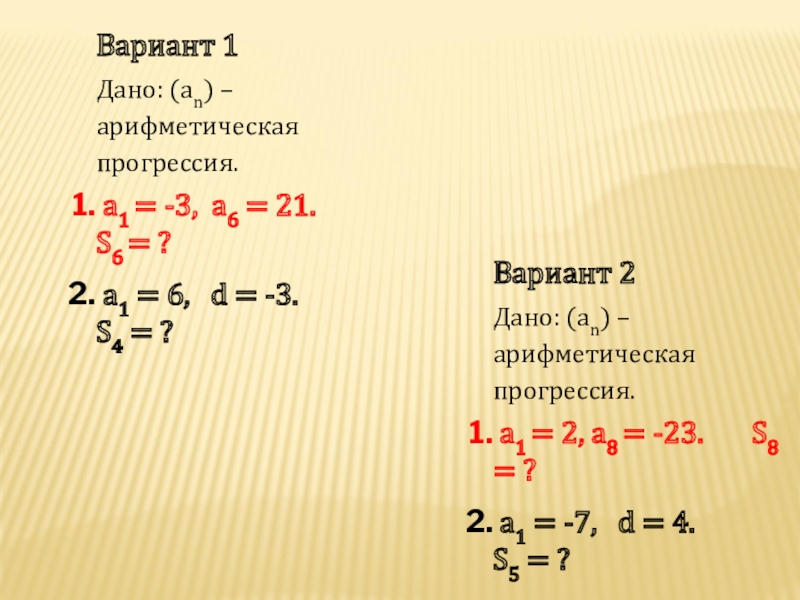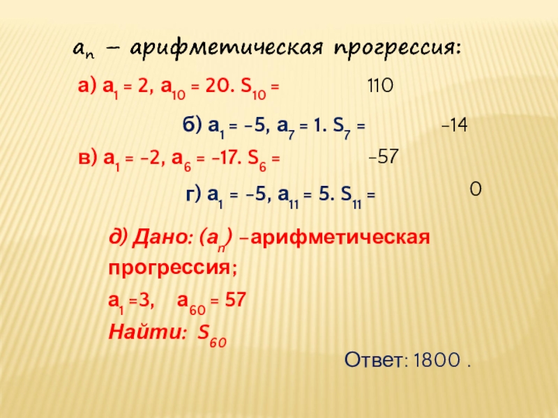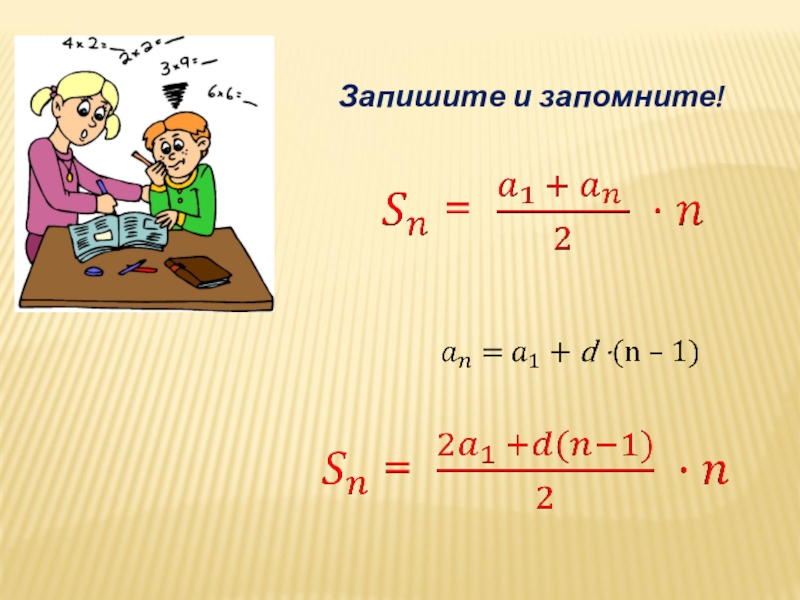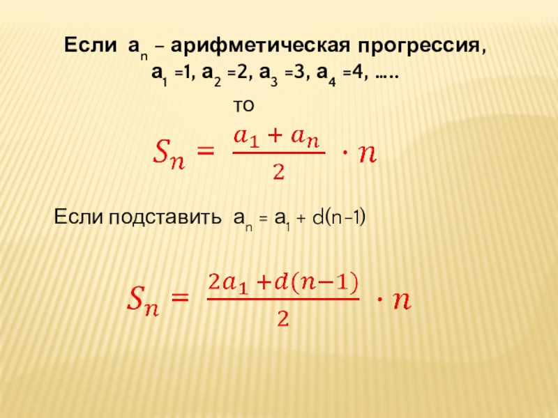 2Sn = ( а1 + аn) + ( а2 + аn-1) +…+ ( аn + а1)