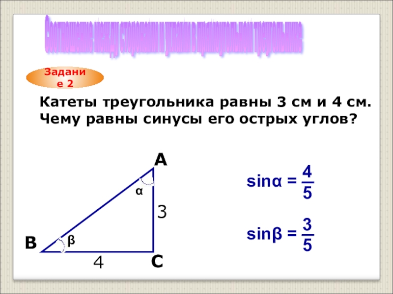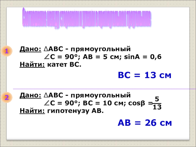 ∠С = 90°; АВ = 5 см; sinА = 0,6