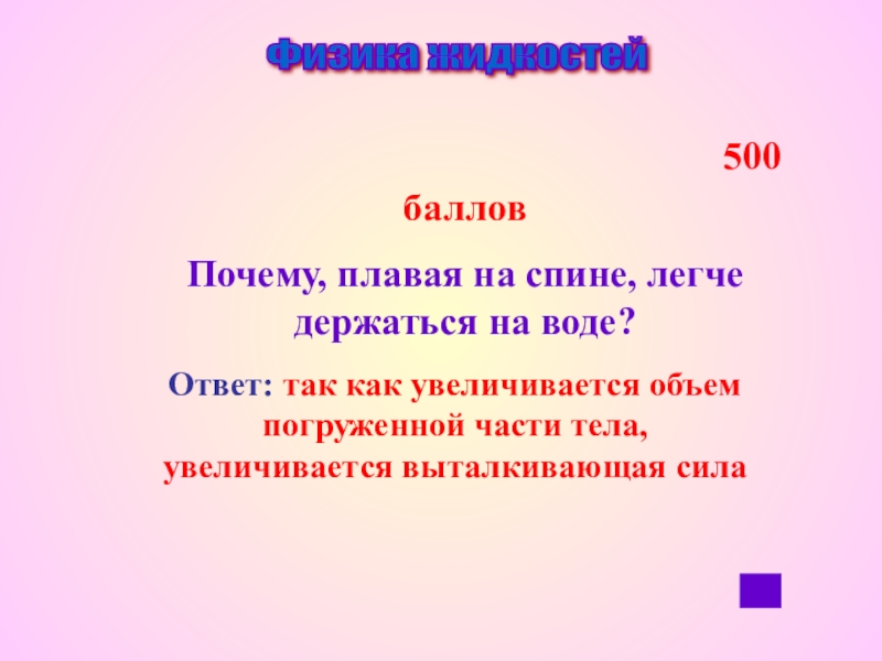 Ответ: так как увеличивается объем погруженной части тела, увеличивается выталкивающая сила