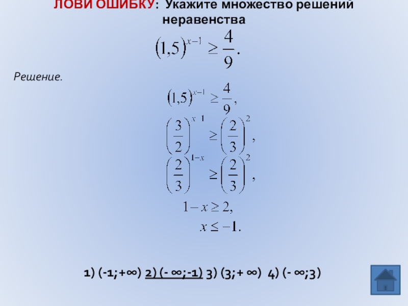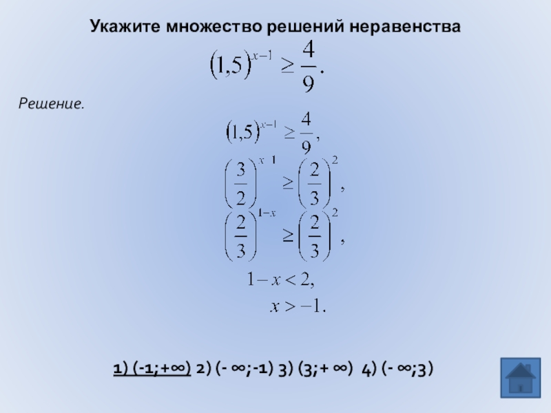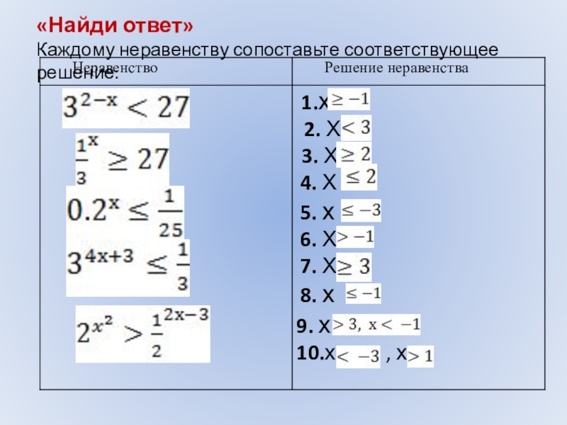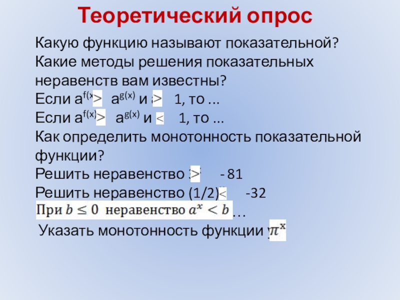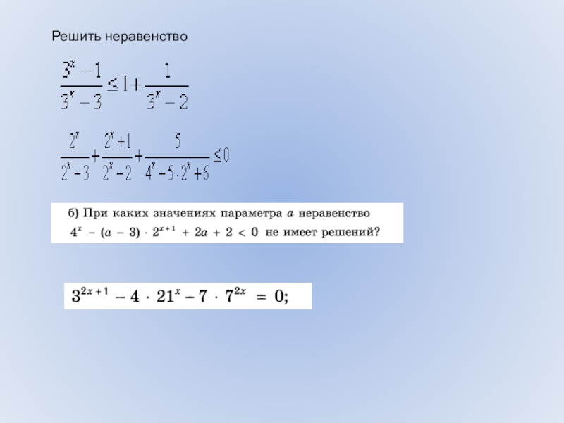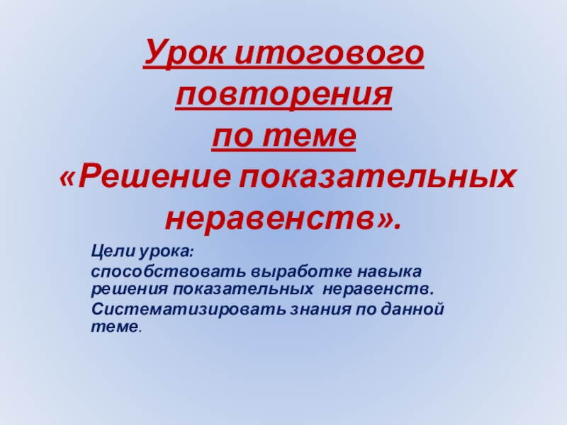 навыка решения показательных неравенств.