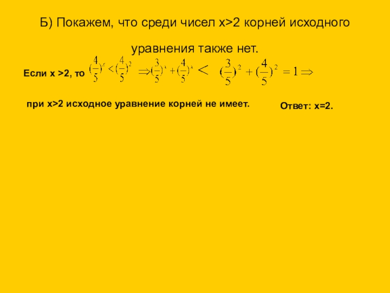 при х>2 исходное уравнение корней не имеет.