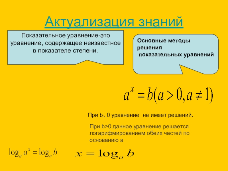 При b>0 данное уравнение решается логарифмированием обеих частей по основанию a