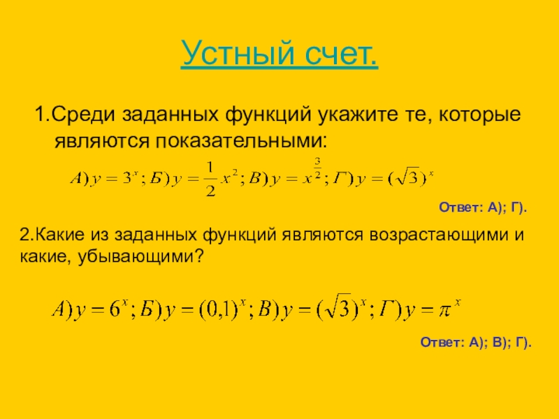 2.Какие из заданных функций являются возрастающими и какие, убывающими?