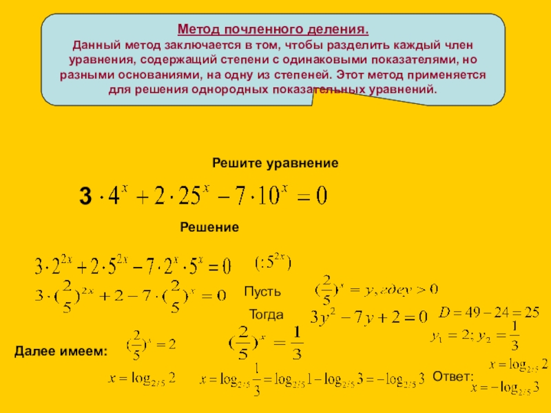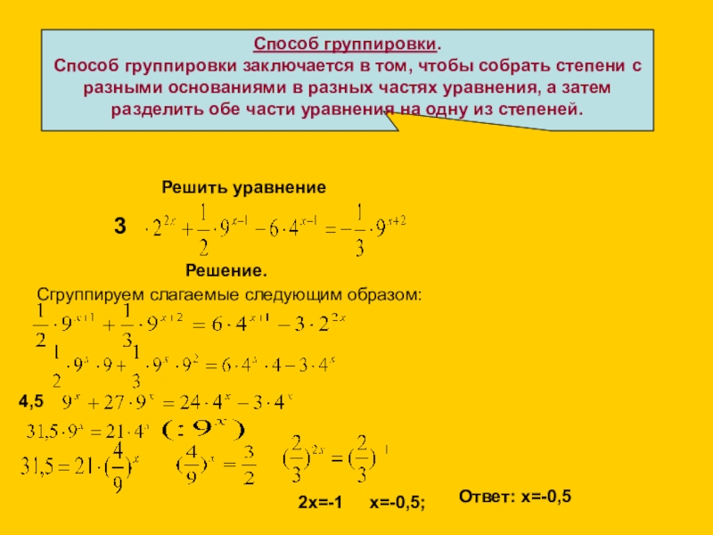 Другие методы решения показательных уравнений