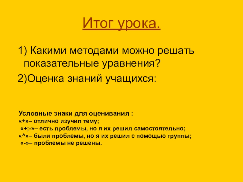 Условные знаки для оценивания :
