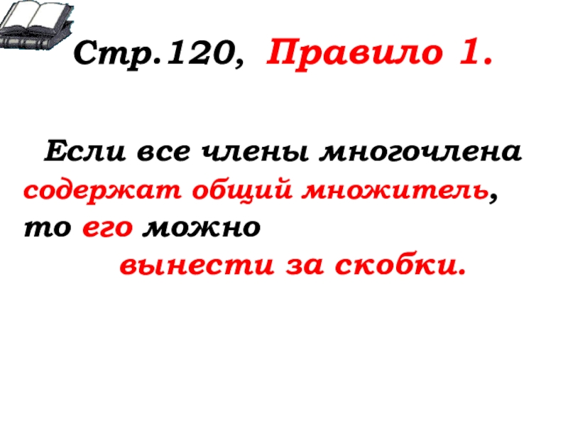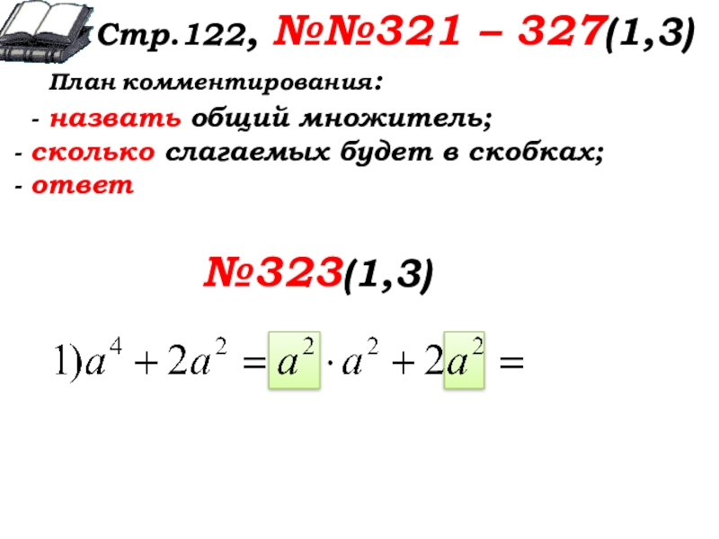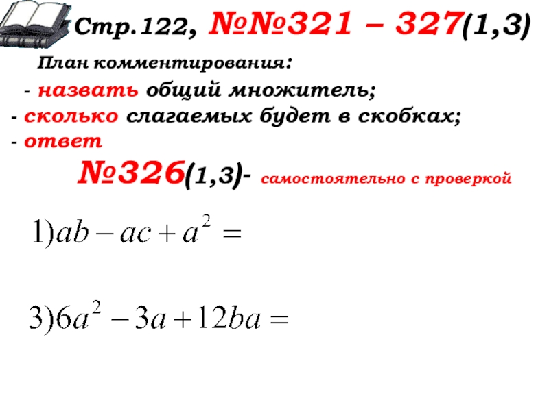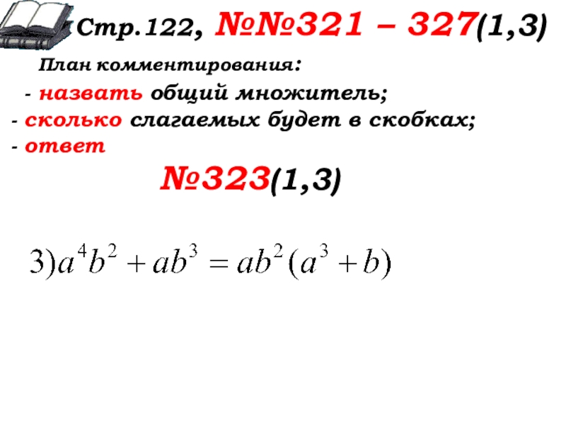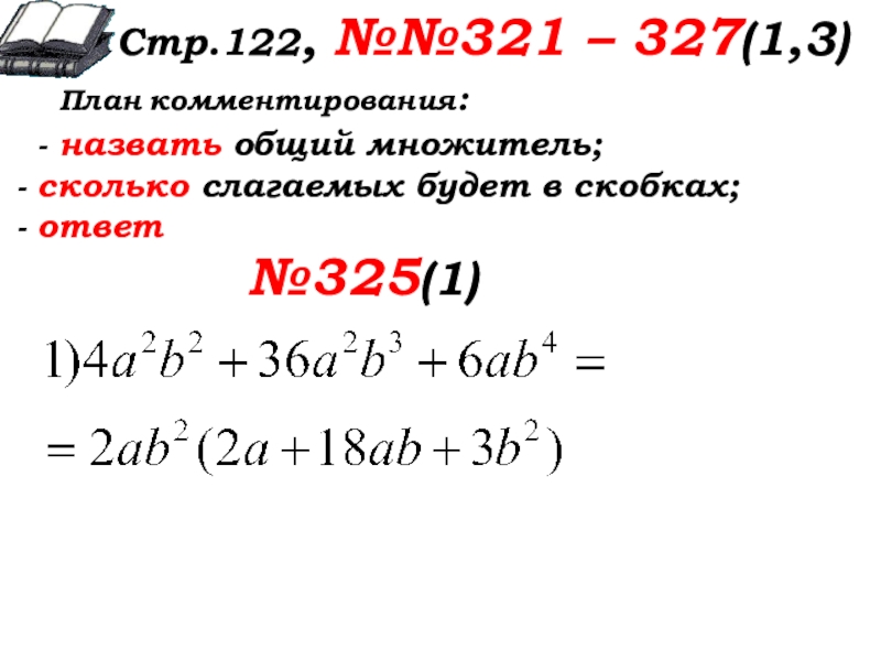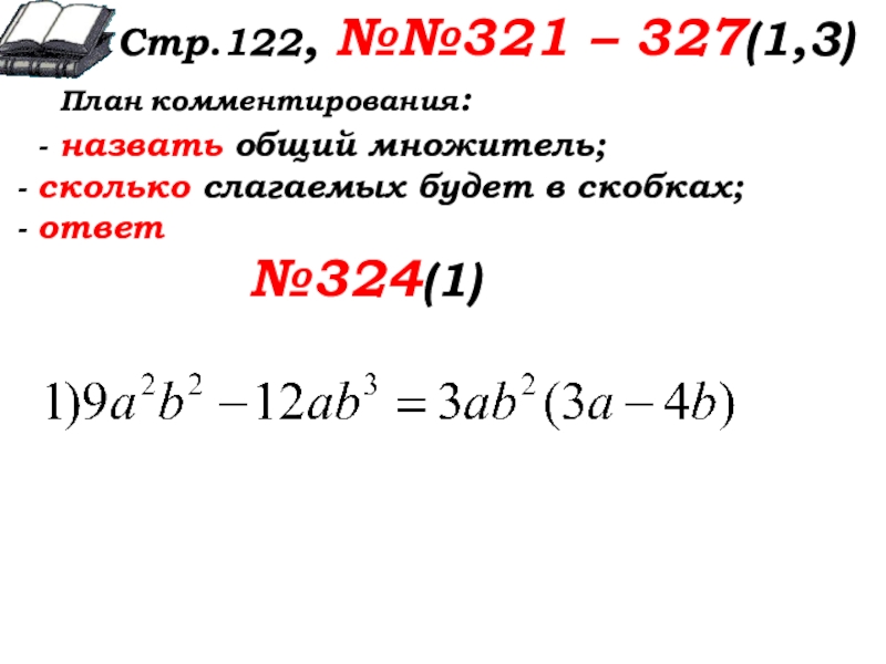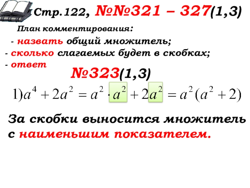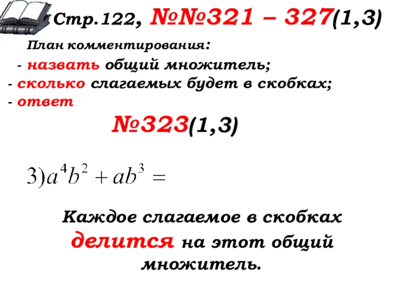 Каждое слагаемое в скобках делится на этот общий множитель.