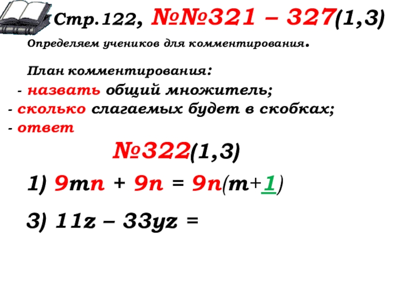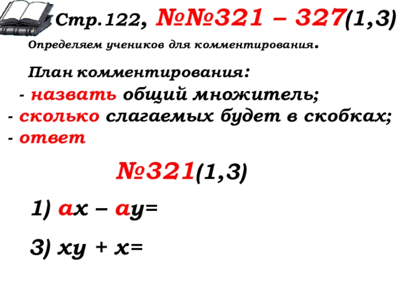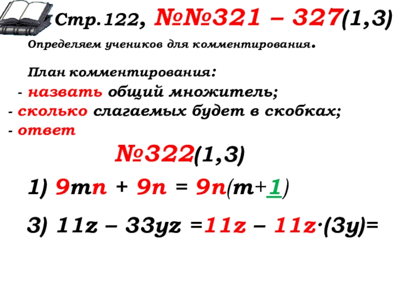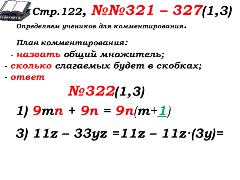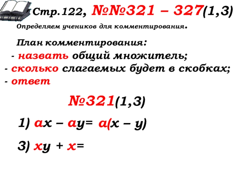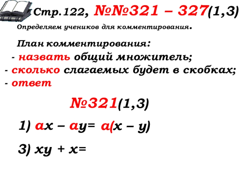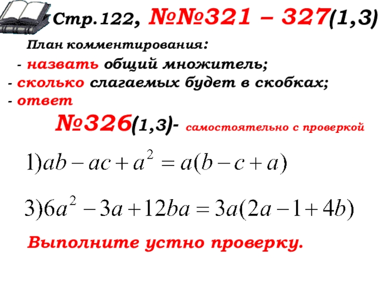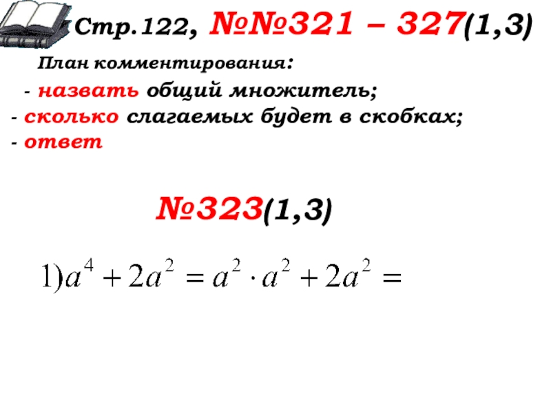 Каждое слагаемое в скобках делится на этот общий множитель.
