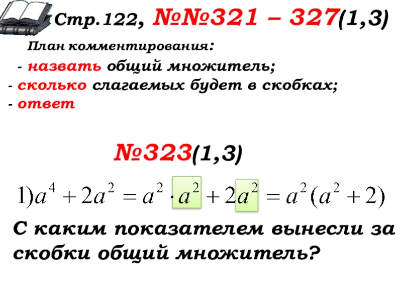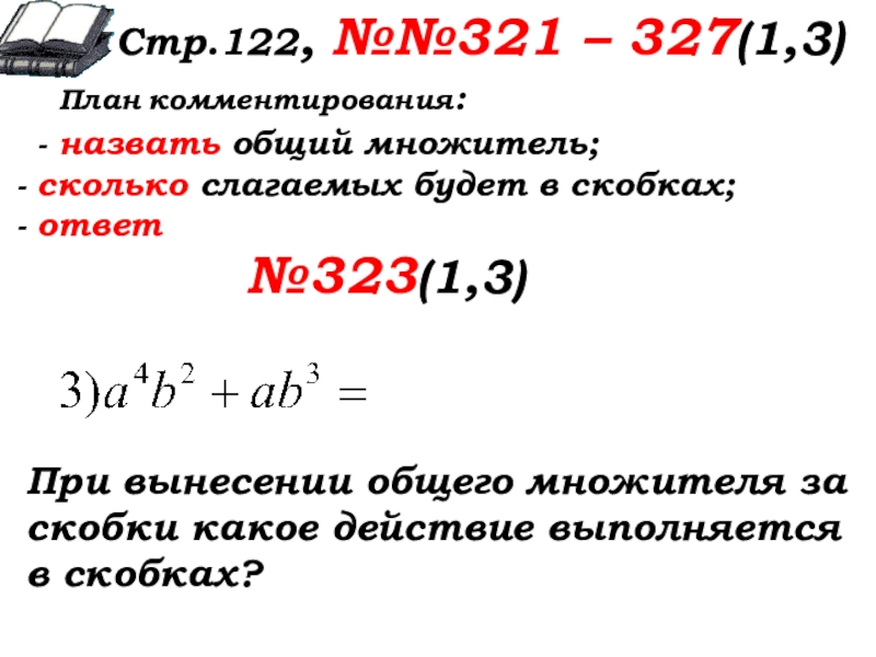 При вынесении общего множителя за скобки какое действие выполняется в скобках?
