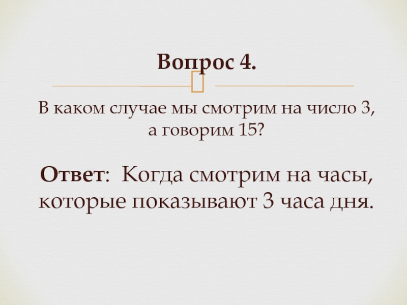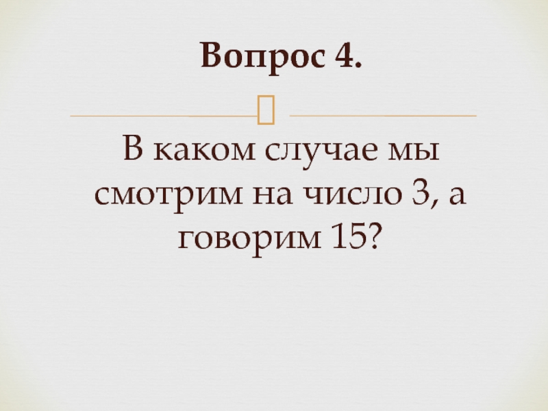 Слайд 8Вопрос 4. В каком случае мы смотрим на число 3, а говорим
