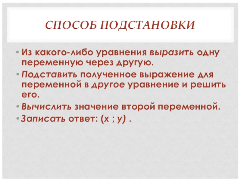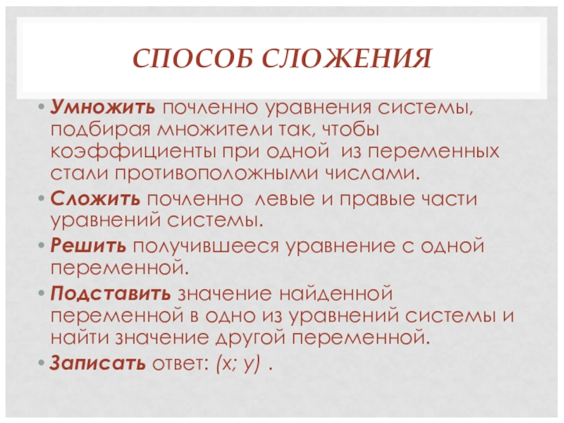 5. Решить полученную систему уравнений удобным способом(методом сложения или подстановки).