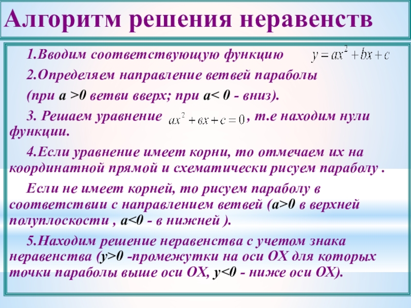 Решить неравенство- значит найти все его решения или доказать, что их нет.