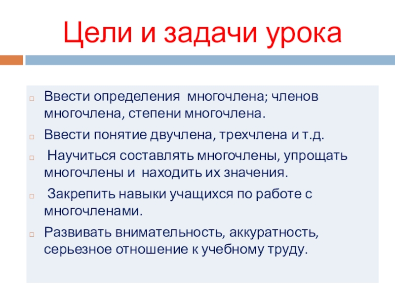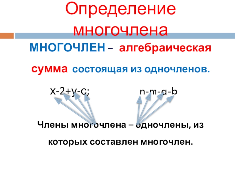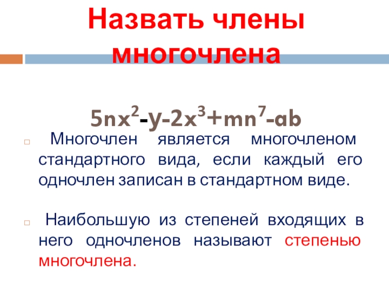 Наибольшую из степеней входящих в него одночленов называют степенью многочлена.