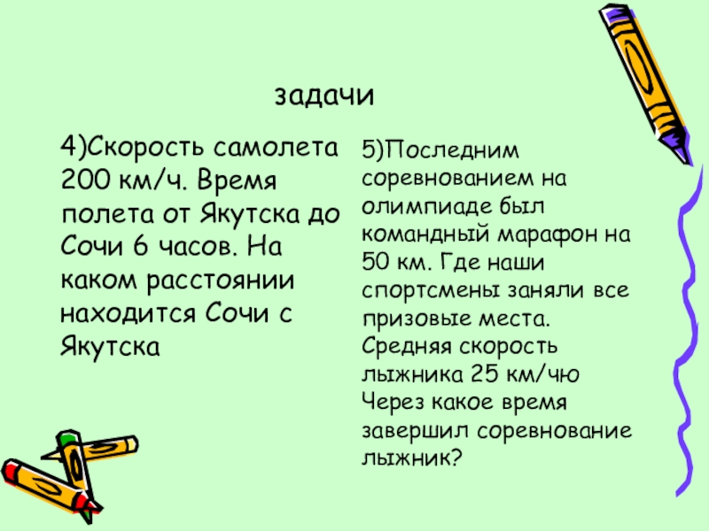 5)Последним соревнованием на олимпиаде был командный марафон на 50 км. Где наши спортсмены заняли все призовые места. Средняя скорость лыжника 25 км/чю Через какое время завершил соревнование лыжник?
