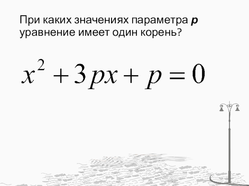 Слайд 14При каких значениях параметра р уравнение имеет один корень?