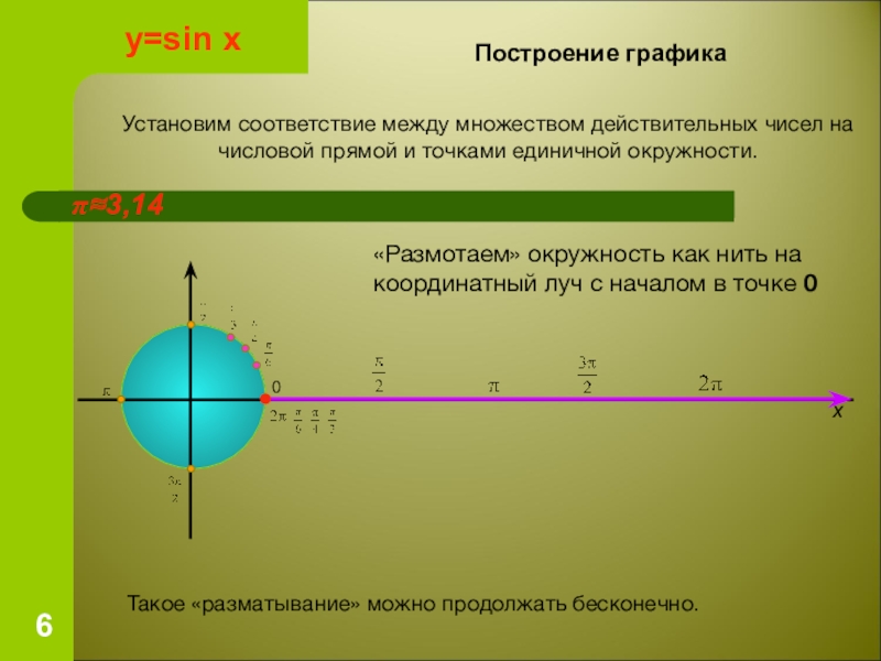 Установим соответствие между множеством действительных чисел на числовой прямой и точками единичной окружности.