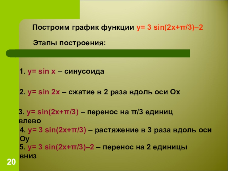 5. y= 3 sin(2x+π/3)–2 – перенос на 2 единицы вниз