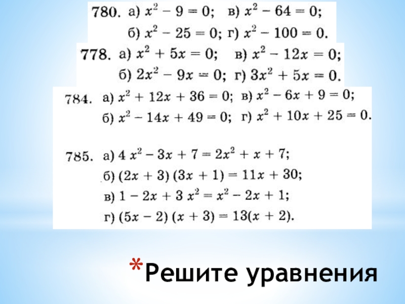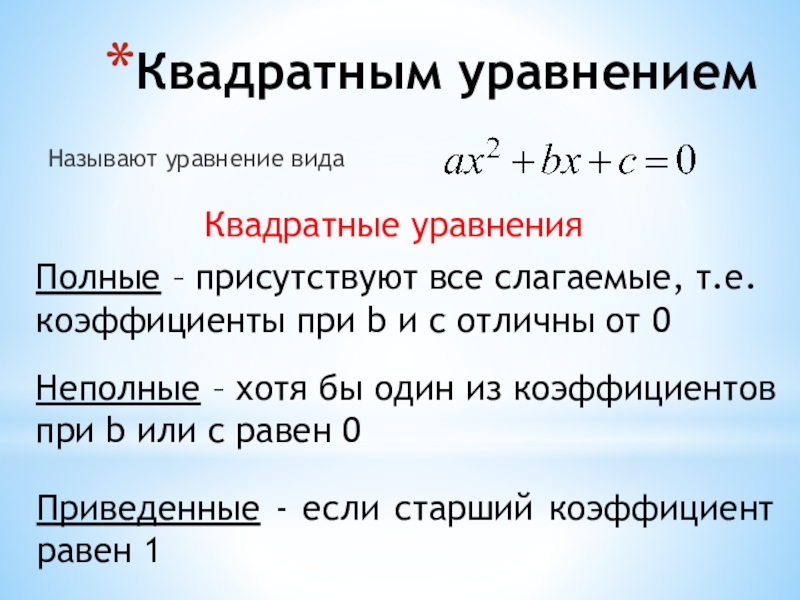 Неполные – хотя бы один из коэффициентов при b или c равен 0