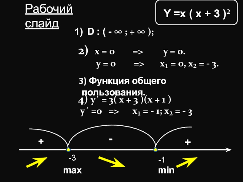 y´ =0 => x₁ = - 1; x₂ = - 3