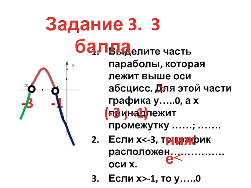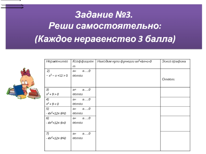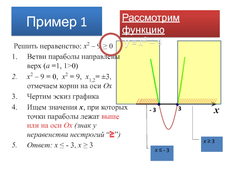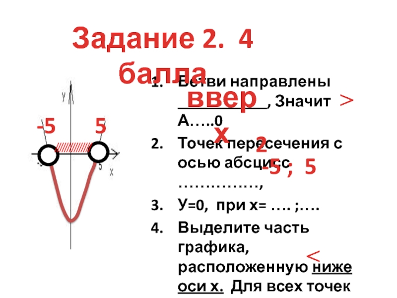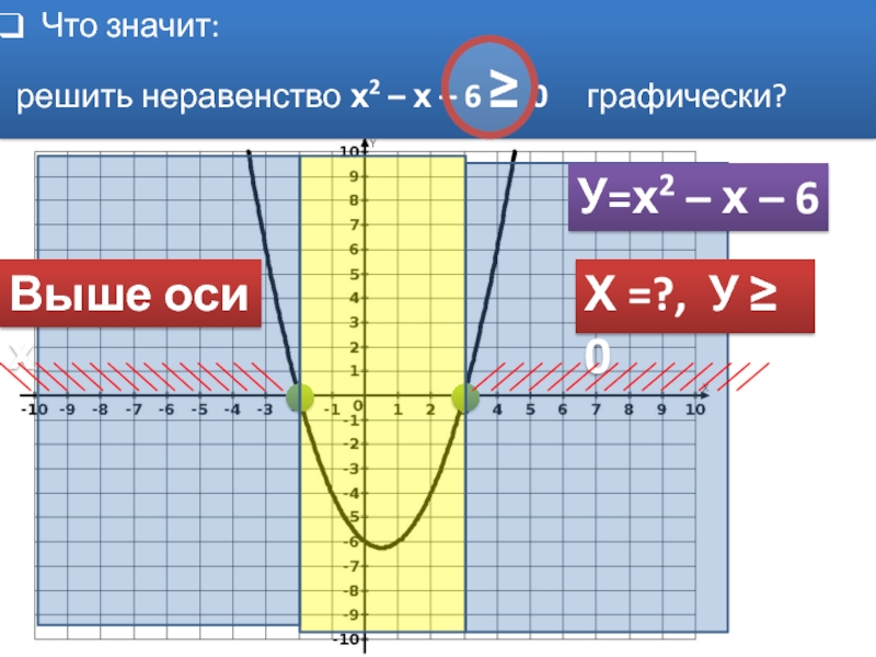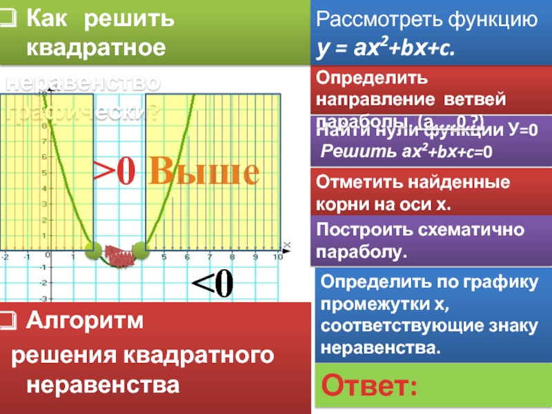 Определить по графику промежутки х, соответствующие знаку неравенства.