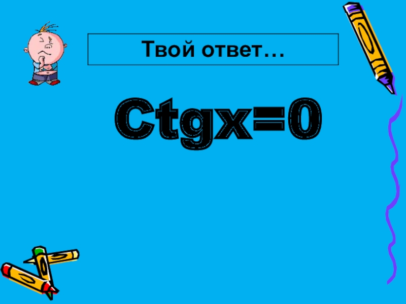 Слайд 7Ctgx=0