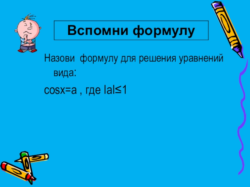 Назови формулу для решения уравнений вида: cosx=a , где ІаІ≤1