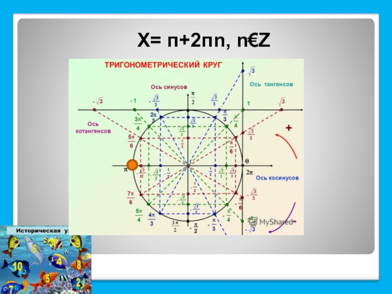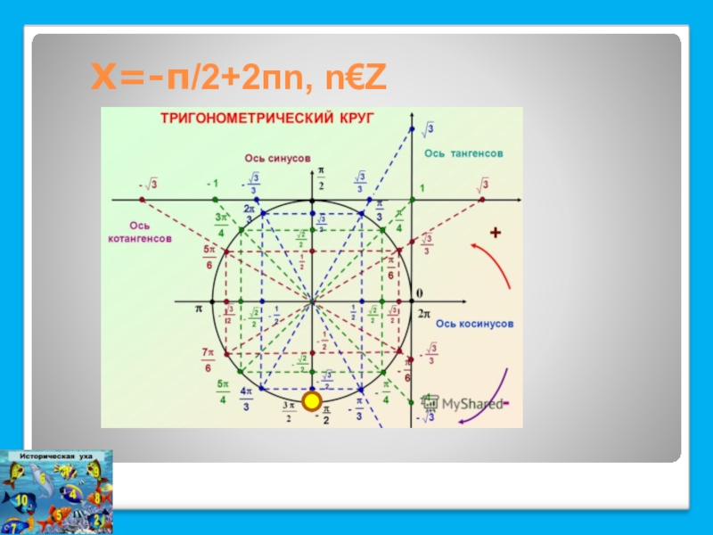 Слайд 6Х=-п/2+2пn, n€Z
