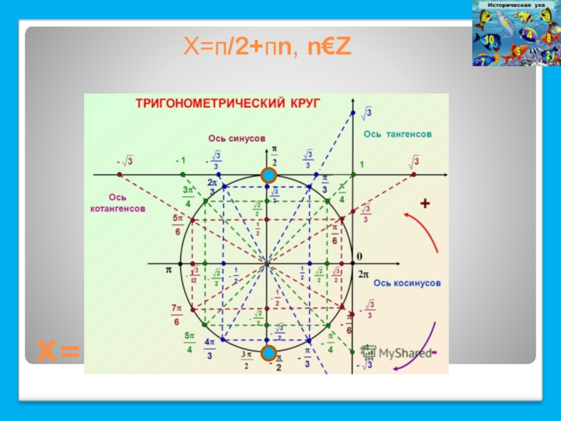 Слайд 4 Х=п/2+пn, n€Z